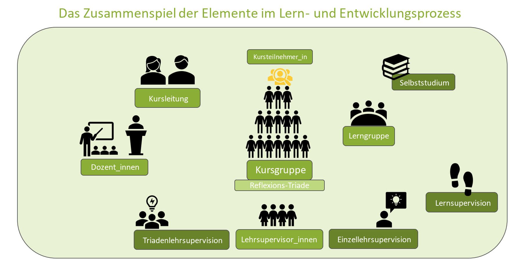 Ausgewählte und hoch qualifizierte Einzel- und Triadenlehrsupervisor:innen/-Coaches leisten einen wichtigen Beitrag zur Förderung der individuellen Kompetenzentwicklung der Studierenden – und zwar weit über die von der DGSv geforderten Mindeststandards hinaus.